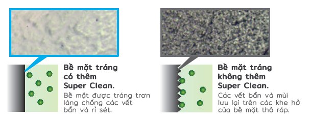 Lớp hoàn thiện trơn nhẵn khiến cho các vết bẩn và mùi hôi khó lòng bám lại, giúp dễ dàng làm sạch.
